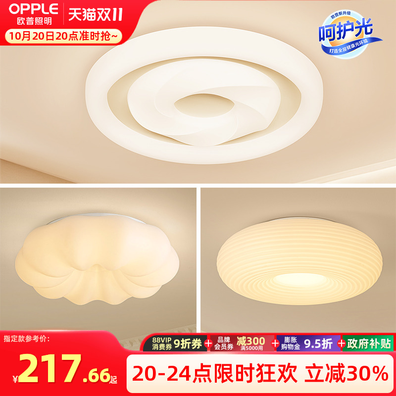 欧普LED全光谱护眼吸顶灯具饰客厅卧室书房餐厅奶油风智能全套TC