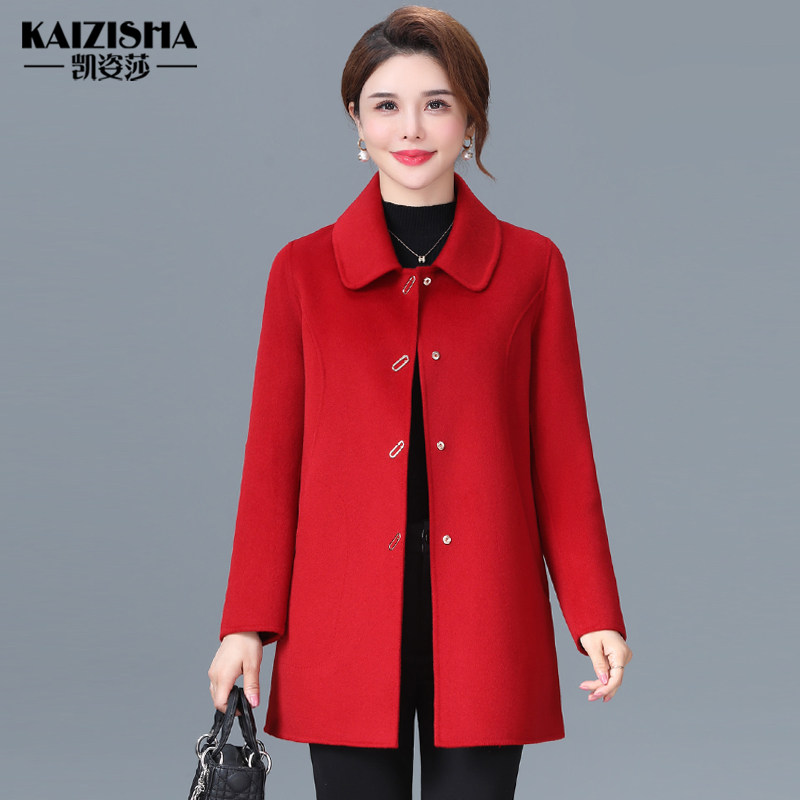 凯姿莎时尚短款双面呢羊毛大衣妈妈装短款呢子中老年女装毛呢外套