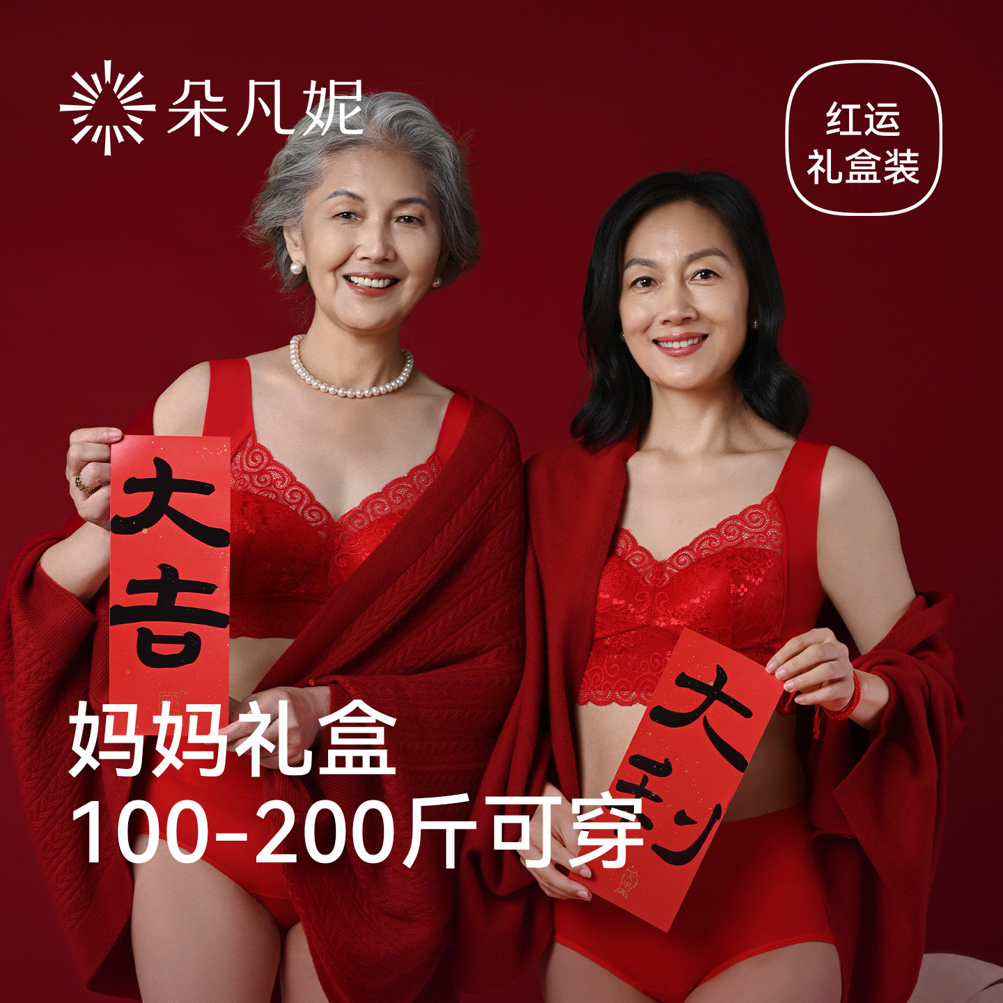 朵凡妮妈妈大码红色本命年内衣套装女中老年人背心文胸罩内裤马年