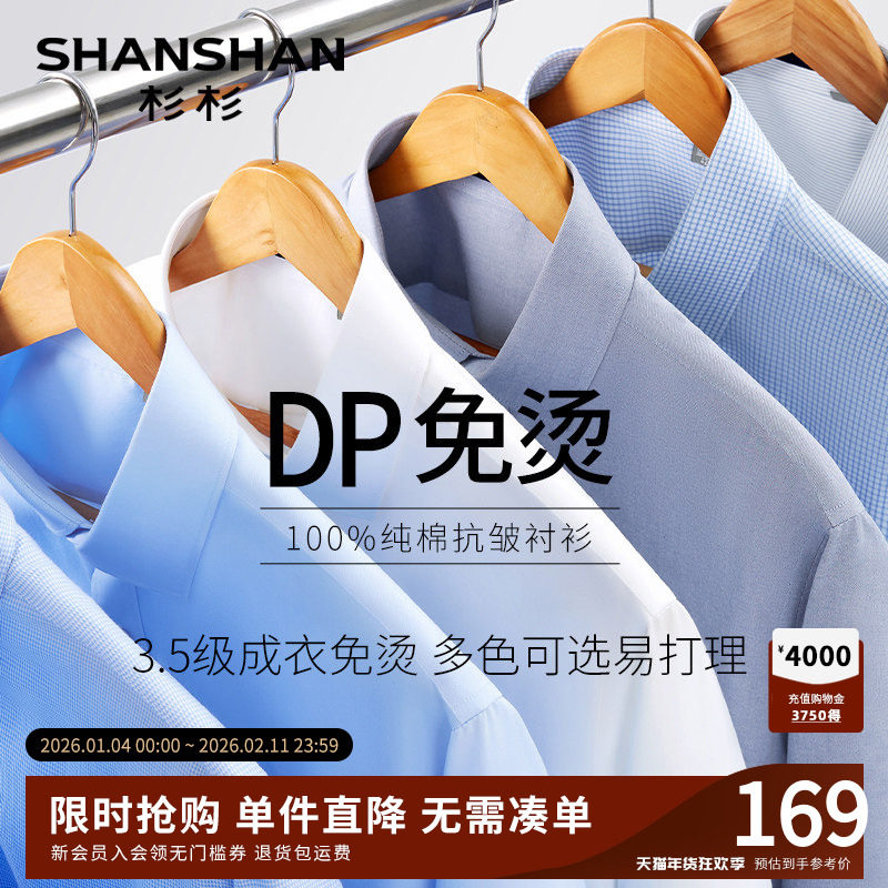杉杉白色衬衫男士长袖2025春秋新款纯棉休闲商务正装免烫衬衣男款
