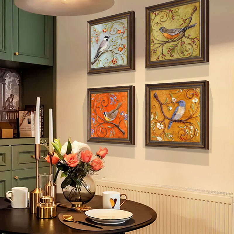 美式客厅挂画大气简美沙发背景墙装饰画餐厅卧室玄关花鸟复古壁画