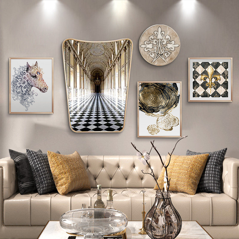 建筑墙画客厅家居挂画美式装饰画现代简美沙发背景墙壁画实木边框