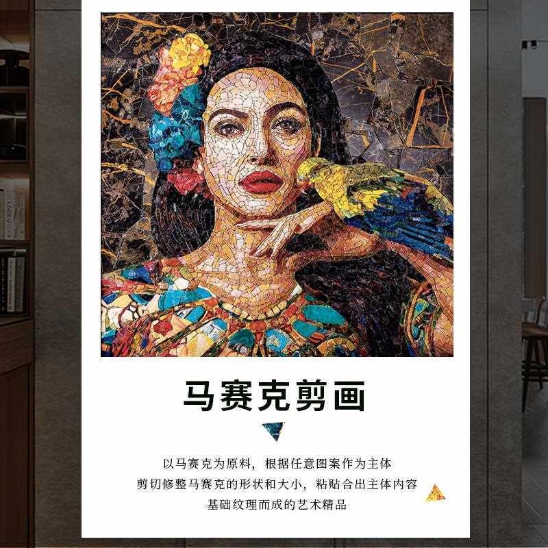 轻奢马赛克玄关装饰画背景墙瓷砖马赛克拼图走廊客厅壁画墙贴剪画