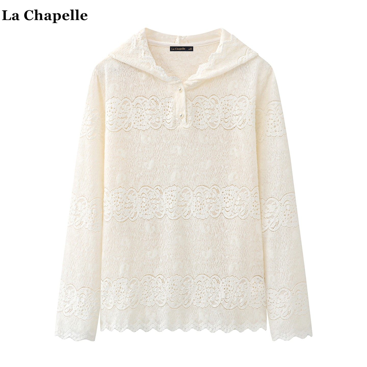 拉夏贝尔/La Chapelle温柔风长袖连帽蕾丝衫女秋冬新款气质打底衫