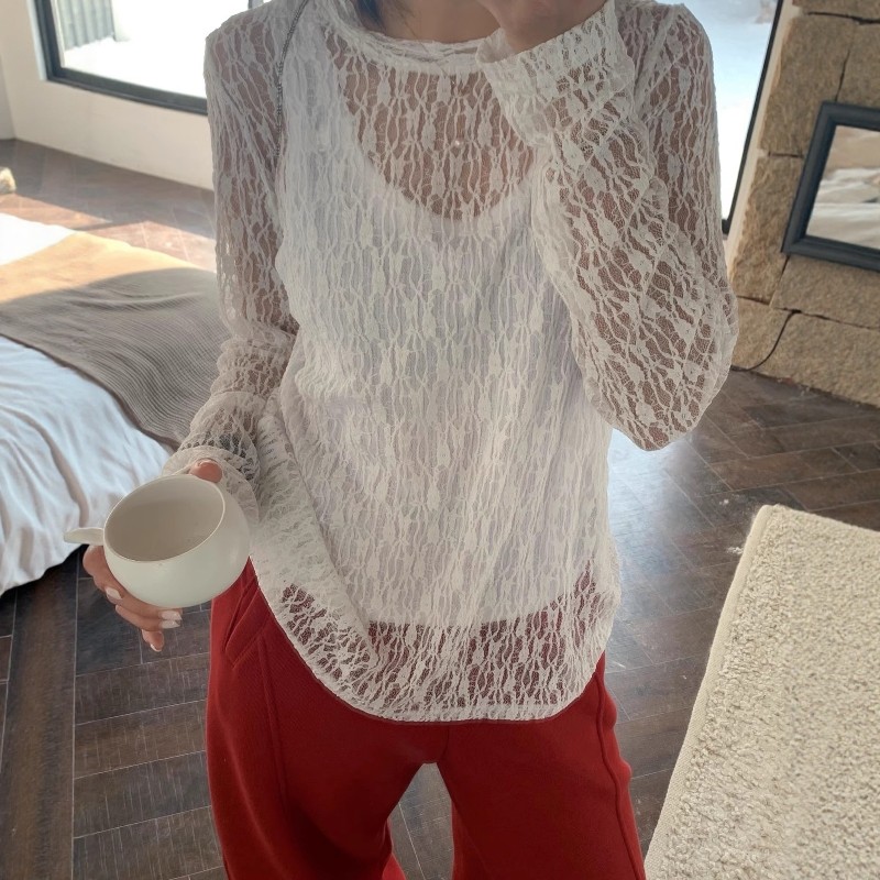 one seven韩系网纱透视蕾丝衫女2026春宽松显瘦百搭叠穿内搭上衣