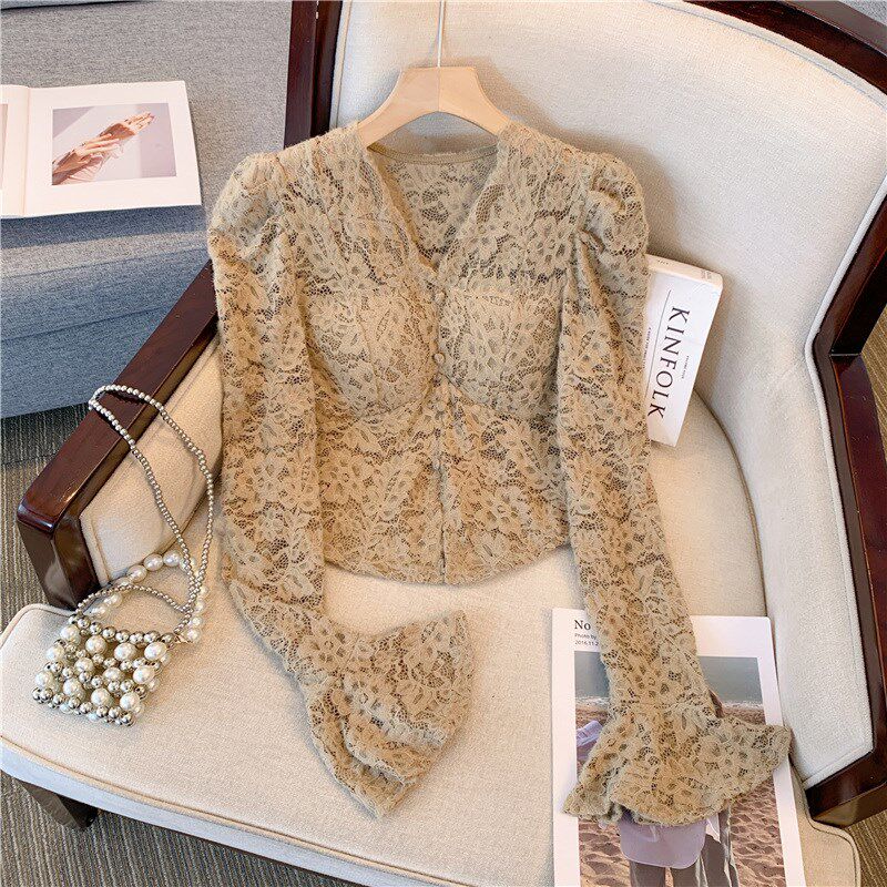 法式洋气名媛风收腰显瘦长袖蕾丝衫女秋季纯欲风个性甜辣百搭上衣