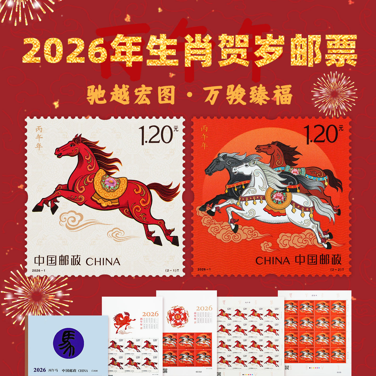 2026-1 丙午年马年生肖邮票 1.20元中国邮政 正品 收藏 集邮 马年
