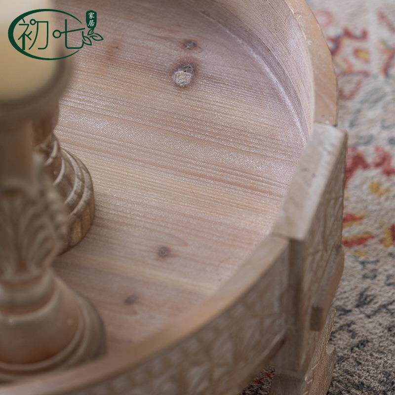 摩饰洛哥木雕花茶VMX几原风实民宿装组合茶桌木日式做旧圆形创意