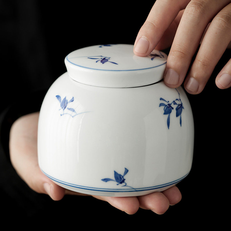 纯手绘蝴蝶兰花茶叶罐陶瓷密封罐便携小号防潮储茶旅行花茶罐茶仓