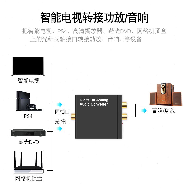 同轴射频数字转模拟光纤音频转换器转3.5音频线莲花线光纤接电视