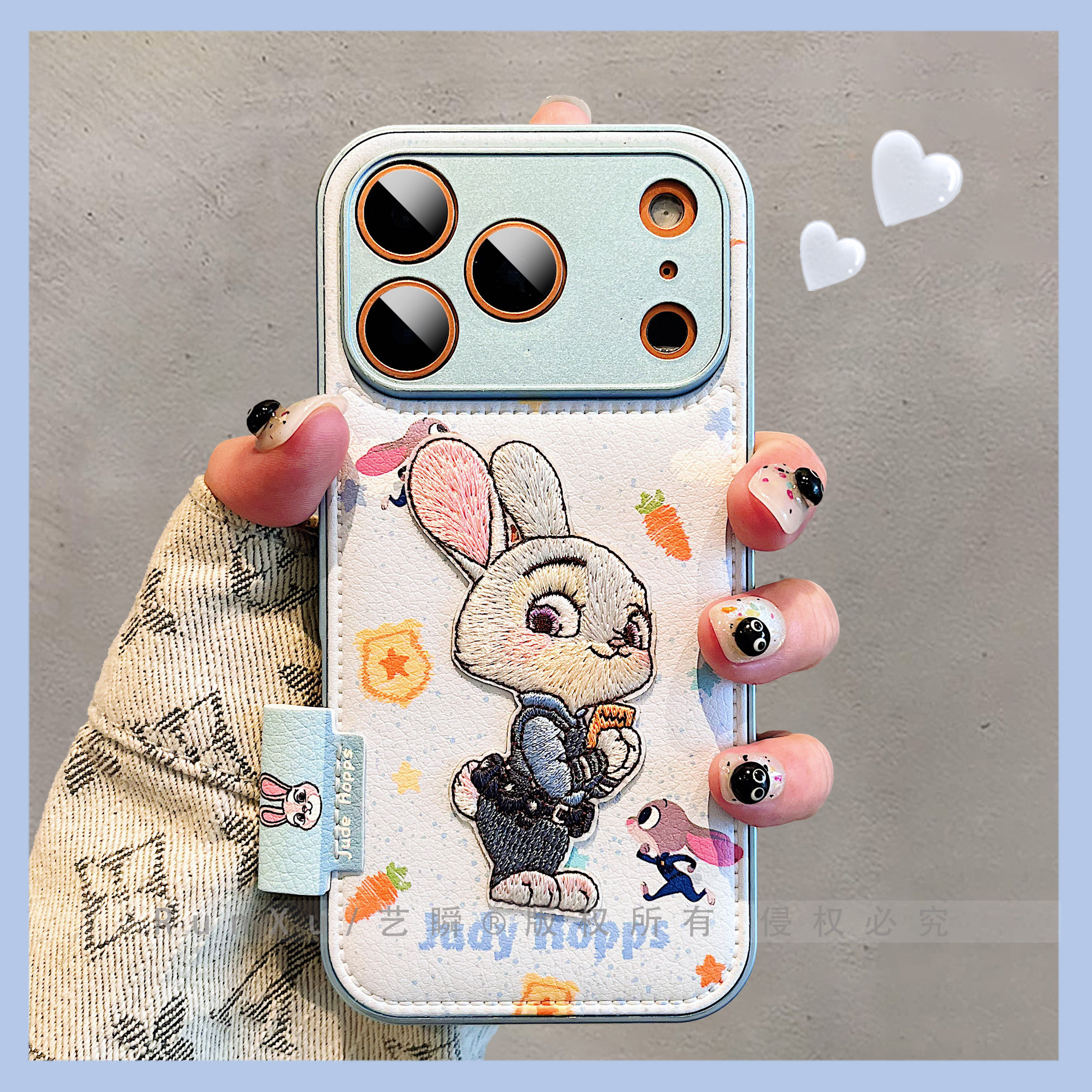 皮质刺绣可爱尼克朱迪适用iPhone17ProMax手机壳苹果ip16pro新款14精孔全包15pro疯狂动物城13pm巨好看保护套