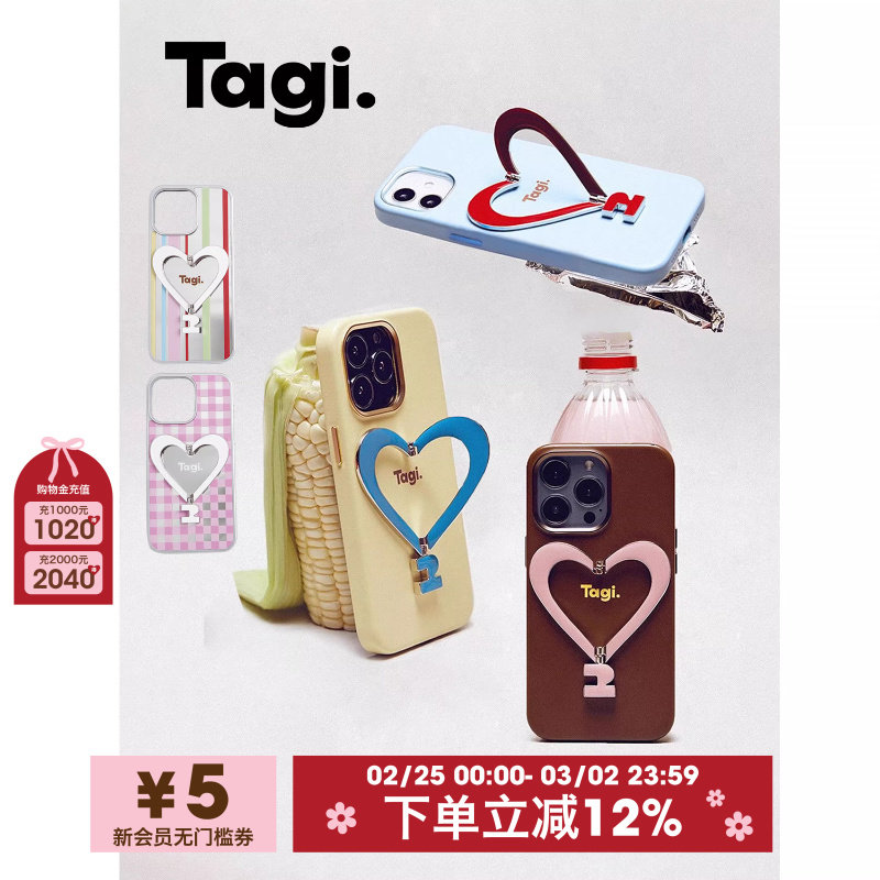 Tagi.《让人开心》金属支架皮质爱心手机壳适用于iPhone17pm/16pm/15pm