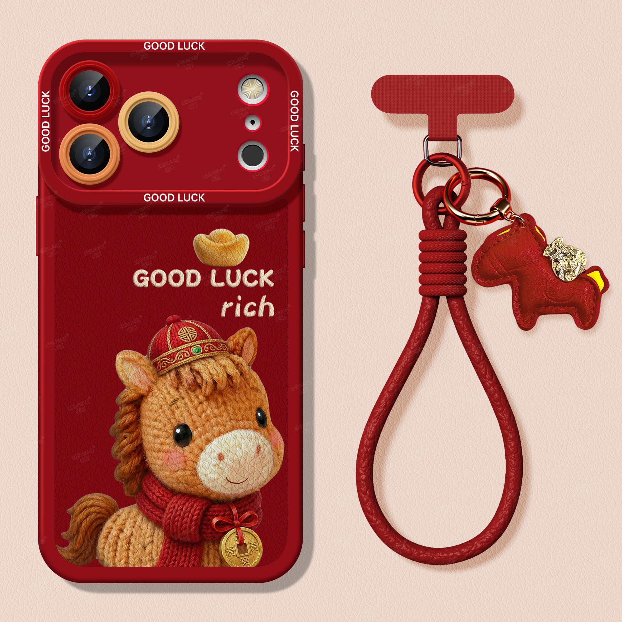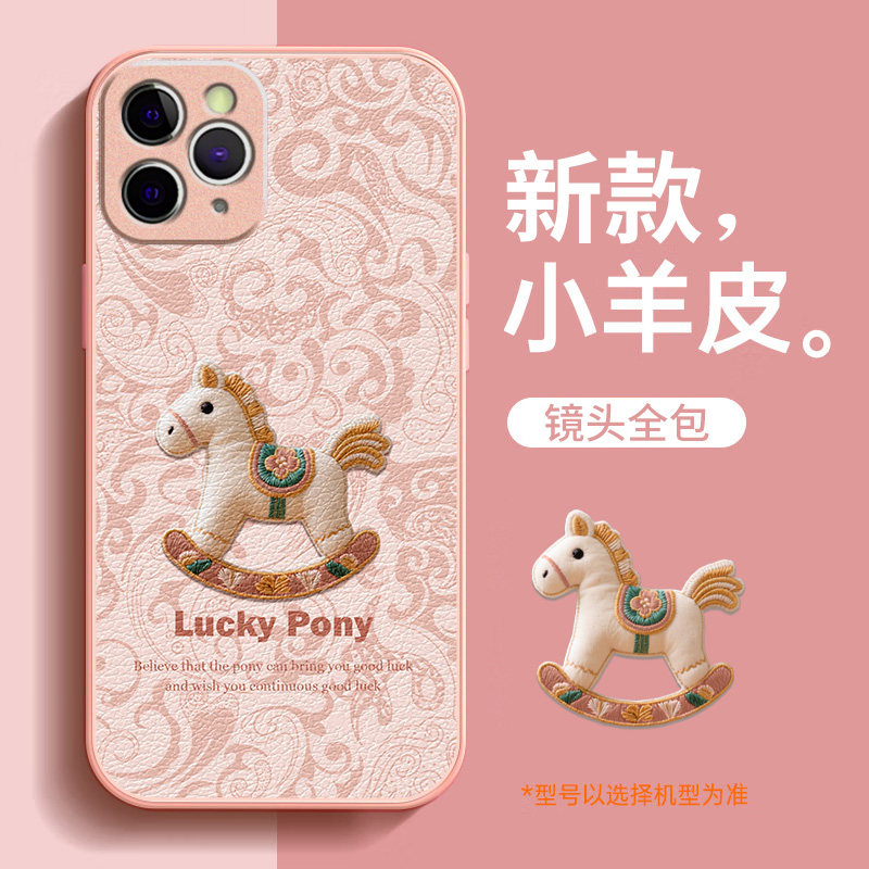 刺绣小马适用苹果17手机壳16新款iPhone15promax马年13本命年12新年mini过年11红色14女plus喜庆x小羊皮xr/xs