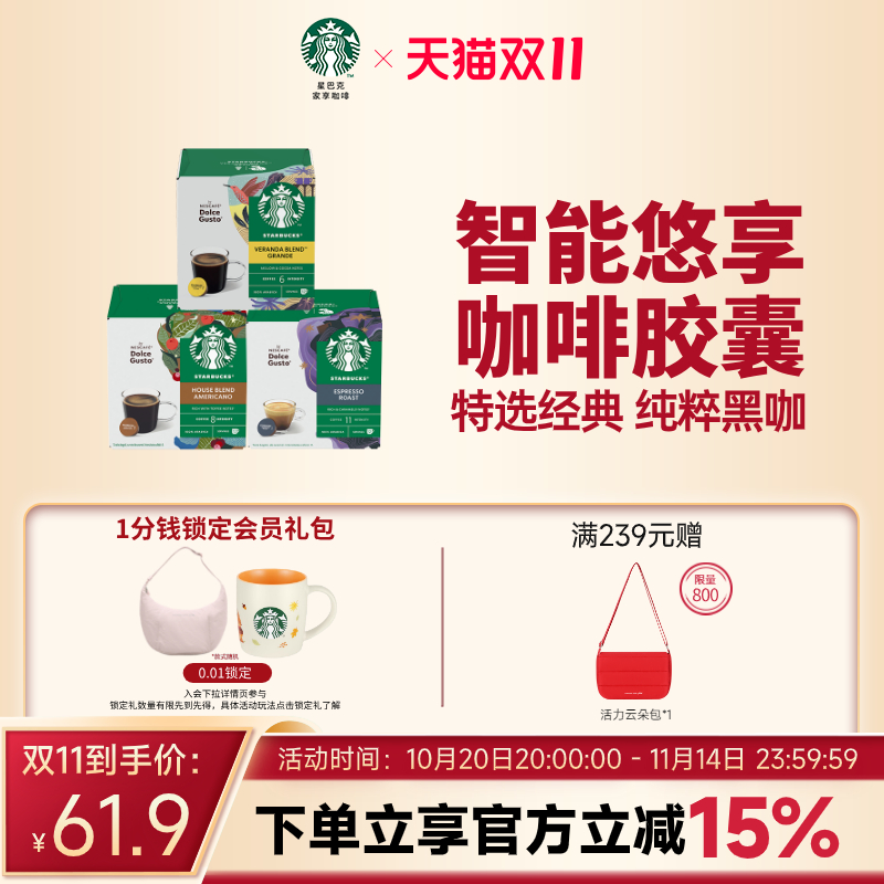 【双11狂欢购】星巴克咖啡进口意式浓缩咖啡多趣酷思胶囊咖啡12粒