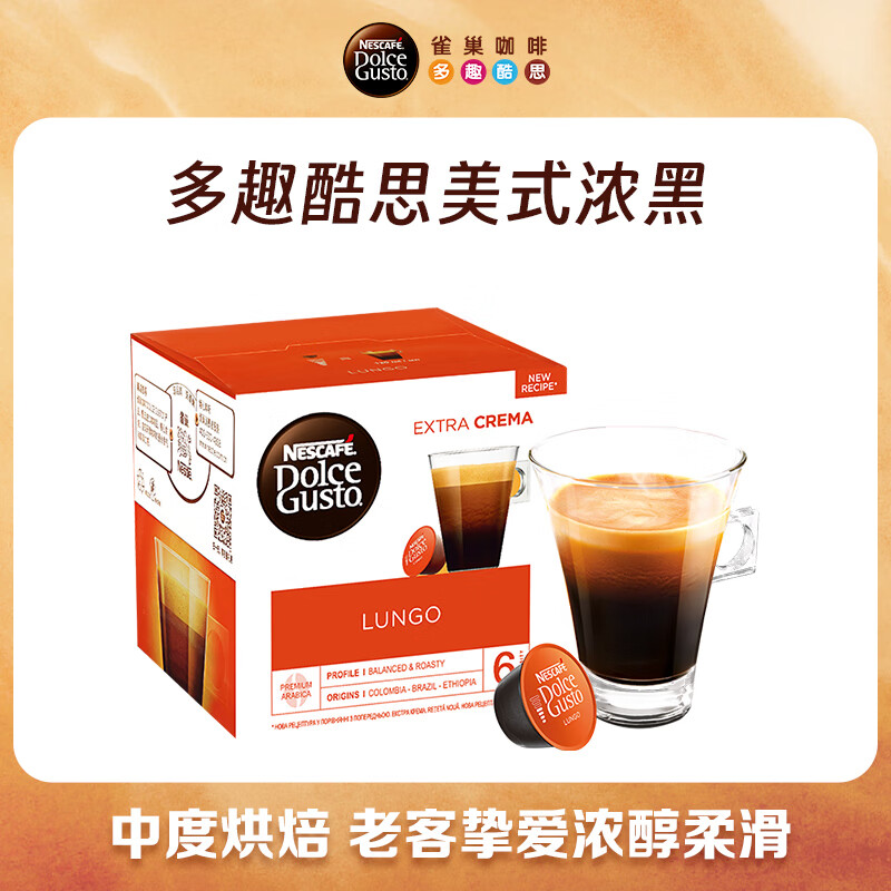 DOLCE GUSTO美式浓黑咖啡进口雀巢多趣酷思胶囊咖啡LUNGO16颗装
