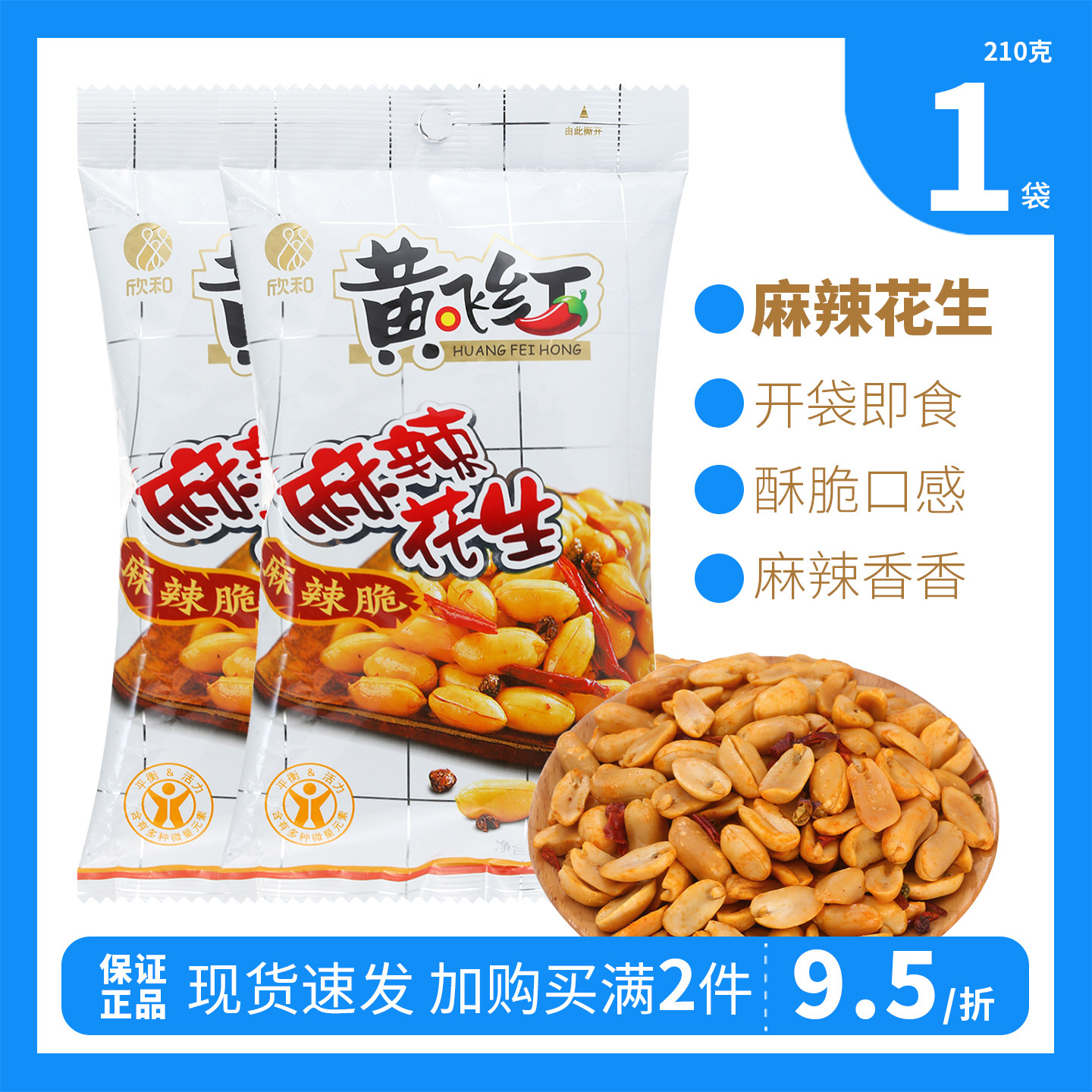 黄飞红麻辣花生米整箱210g/110g/70g/25g零食山东欣和黄飞鸿