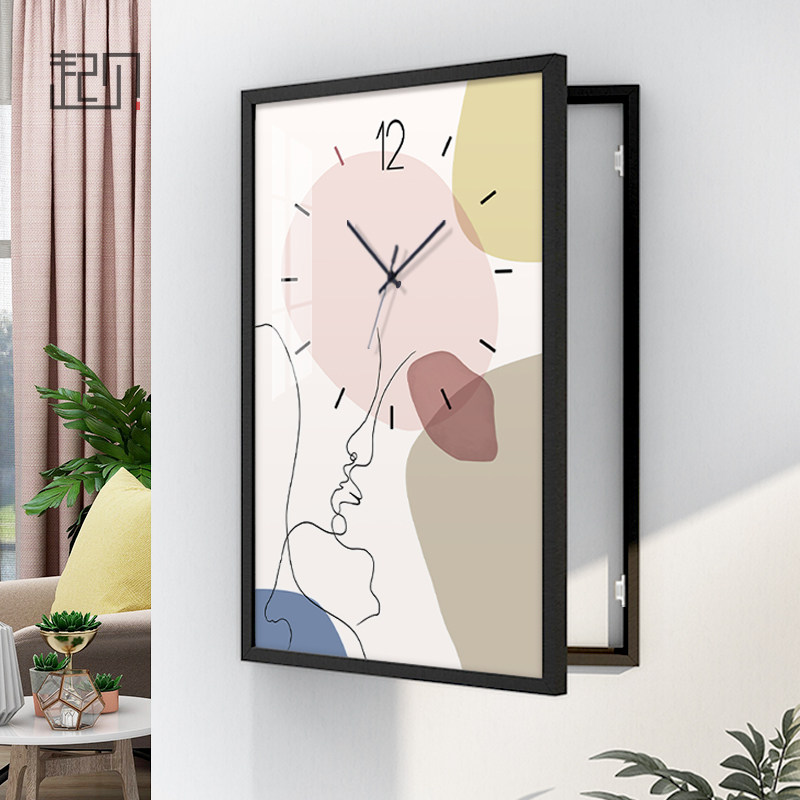 起贝北欧玄关抽象带钟电表箱竖款时钟挂钟遮挡箱配电箱装饰盒挂画