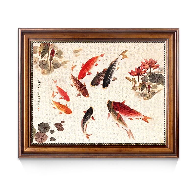 新中式电表箱装饰画九鱼免打孔客厅开关电表盒配电箱电闸挂画遮挡