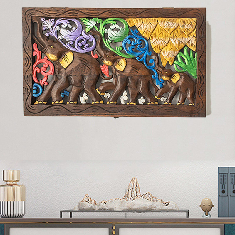 泰国实木雕刻电表箱装饰画餐厅y配电箱装饰盒遮挡箱电闸箱复古挂