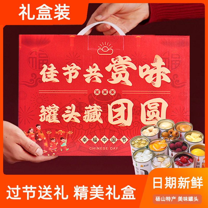 年货赏味手提礼盒装水果罐头黄桃整箱零食什锦橘子杨梅425g整箱