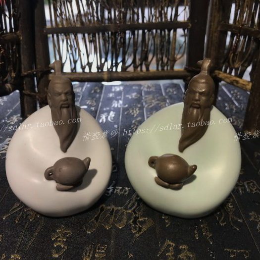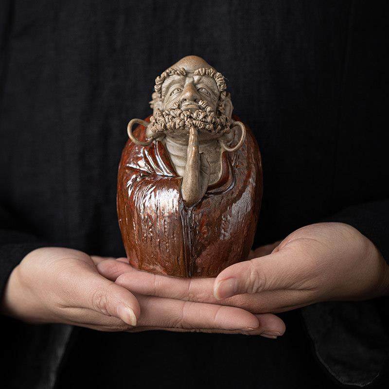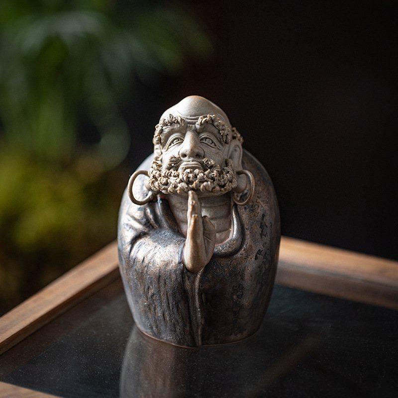 创意汝窑达摩摆件禅意人物中式客厅博古架水族造景装饰品紫砂微瑕