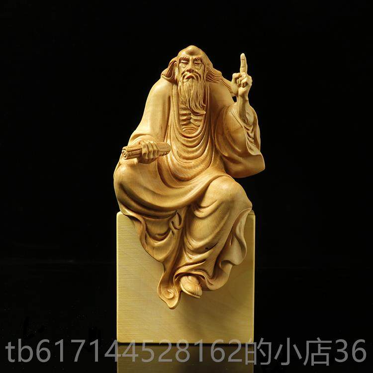 黄杨木雕老子传道一指问天下达摩摆件手工工艺品书桌茶宠佛像人物
