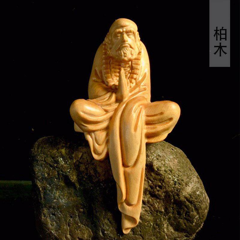黄杨木雕达摩摆件工艺品居家办公室禅意木质雕刻中式卷发悟道师祖