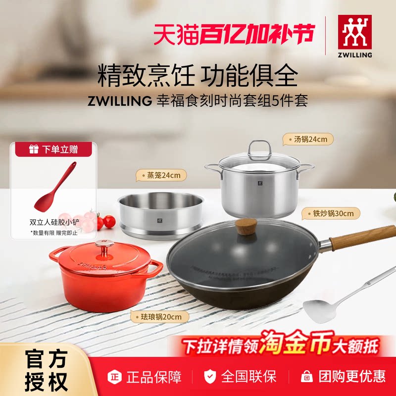 德国双立人厨具套装0图层不锈钢汤锅蒸笼铁炒锅珐琅锅铸铁锅锅铲