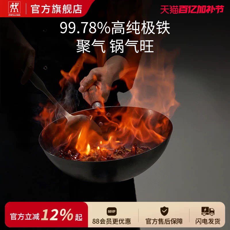双立人炒锅铁锅大口径炒菜锅厨具电磁炉燃气通用SILVER银光铁系列