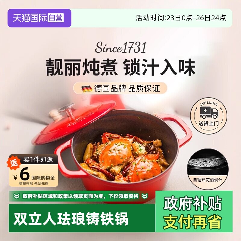 【官方正品】德国双立人20cm铸铁珐琅锅家用炖锅煲汤电磁炉多用