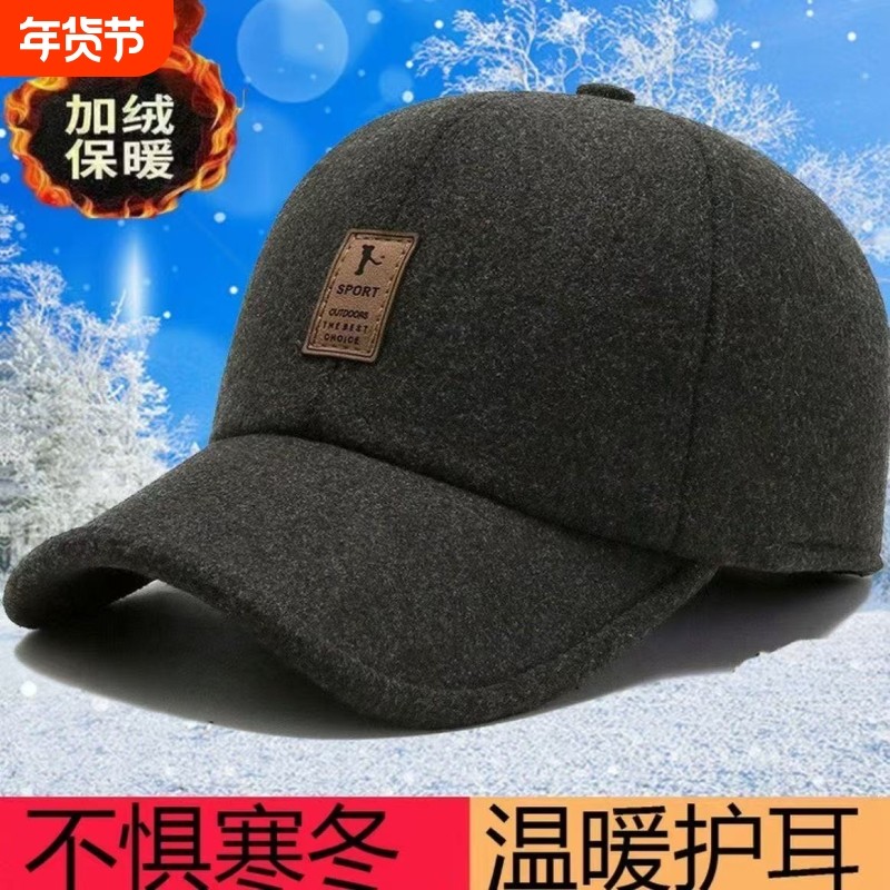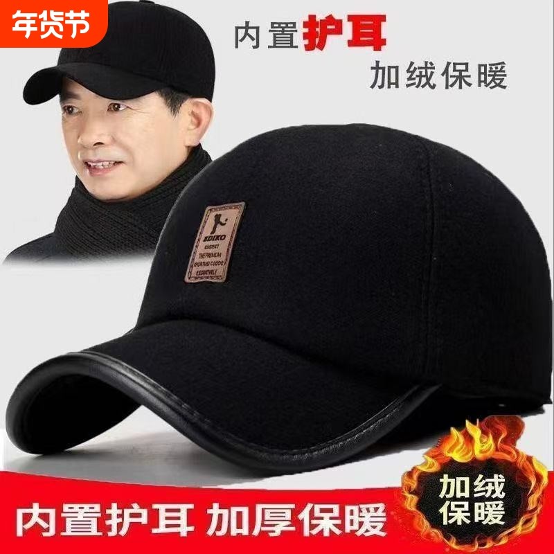帽子男士中老年人秋冬季爸爸保暖棒球帽爷爷老头护耳加绒厚鸭舌帽