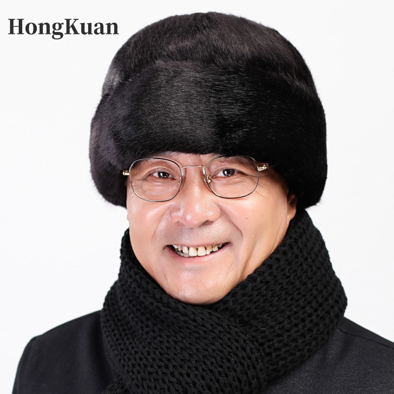 貂皮帽子男中老年秋冬季保暖水貂皮草老头帽整貂貂毛拼貂真皮棉帽