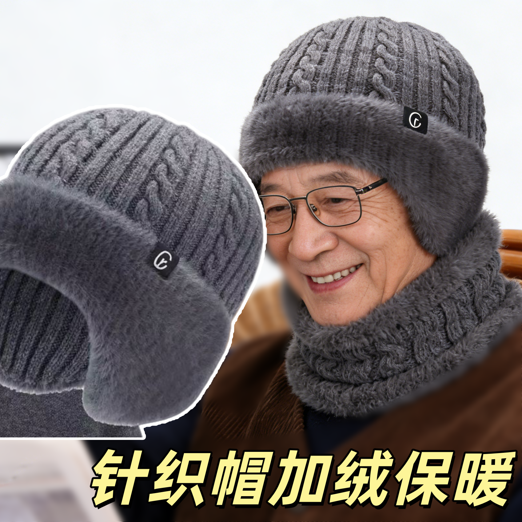 老人帽子爷爷男士冬季毛线羊毛保暖中老年加绒加厚护耳老头爸爸帽