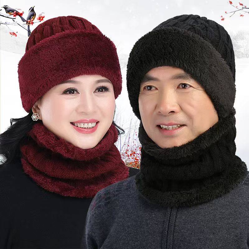 中老年人帽子男冬天奶奶保暖毛线帽女爸爸老头帽冬季老人妈妈围脖