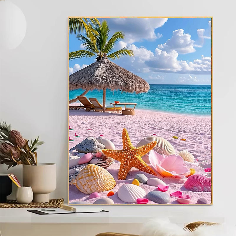 2025风景钻石画新款满钻客厅卧室手工点贴钻十字绣沙滩贝壳治愈系