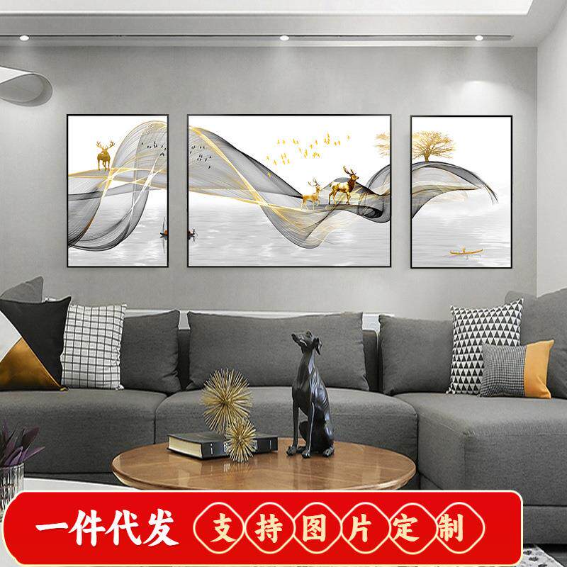 5d钻石画满钻三联画客厅发财麋鹿风景点钻贴钻十字绣手工diy