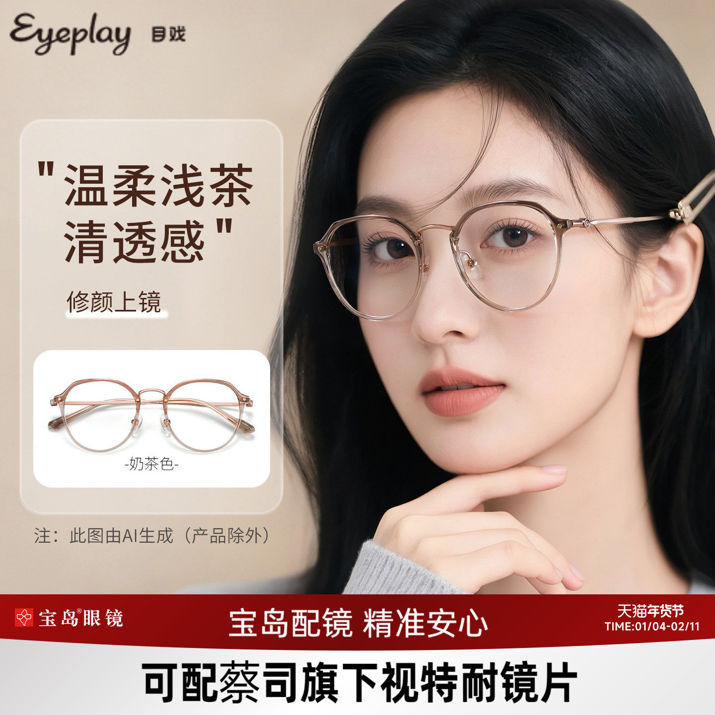 目戏素颜奶茶色专业配眼镜近视女可配镜片度数眼镜框镜架5018C2