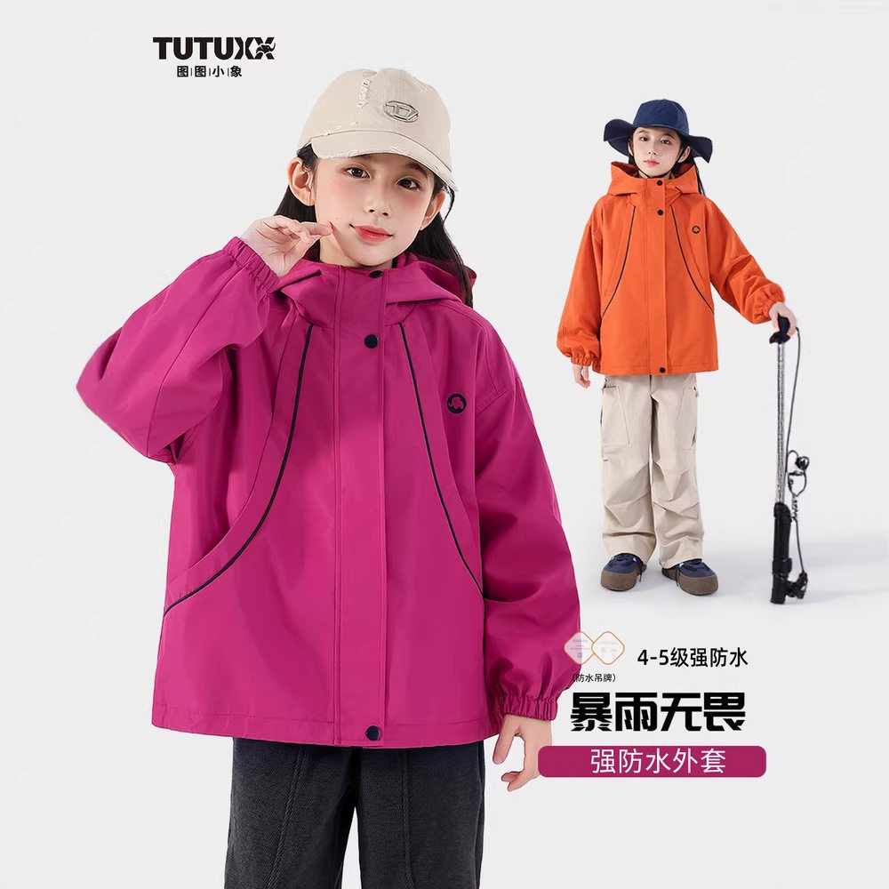 图图小象童装女童外套2026春季新款户外防水冲锋衣三合一户外上衣