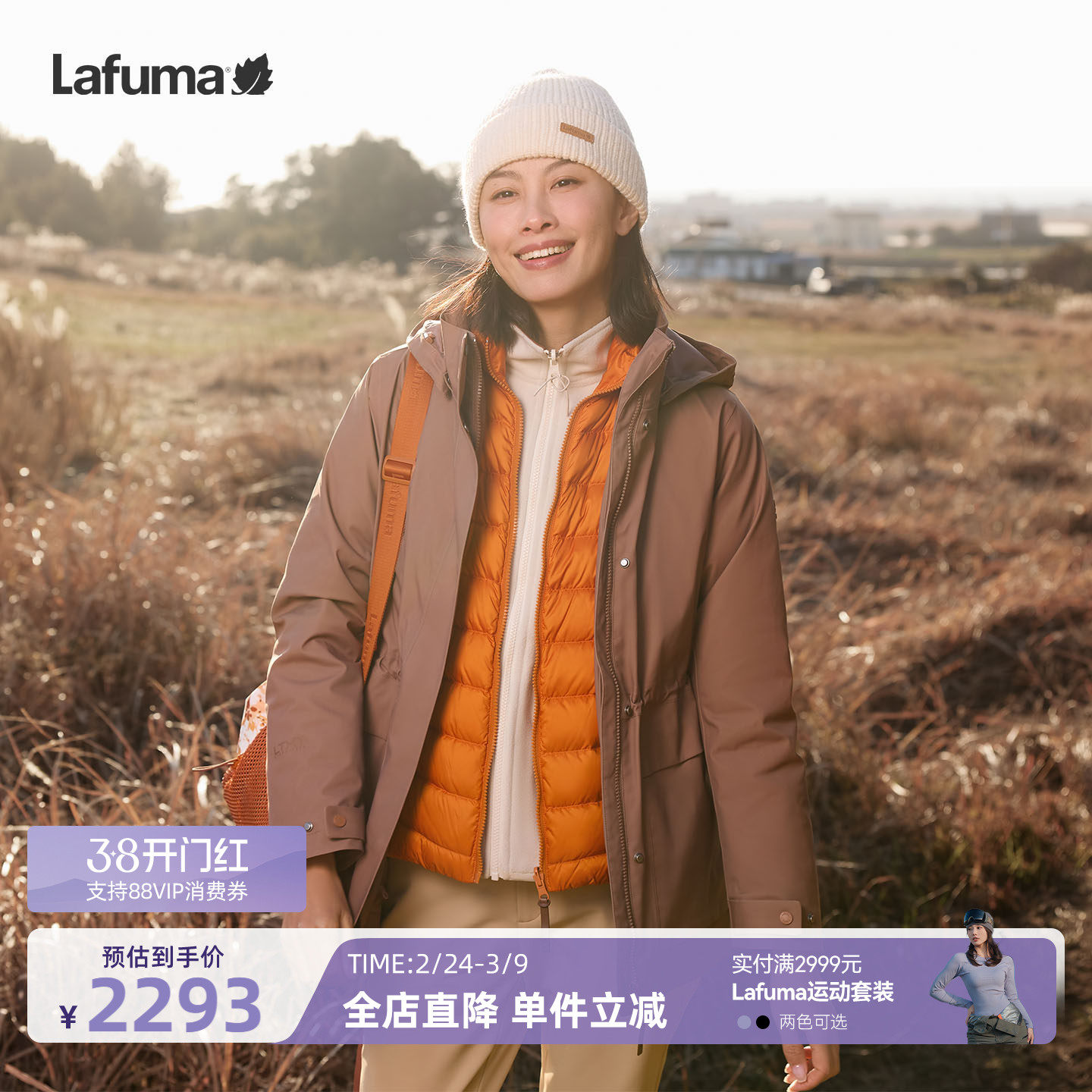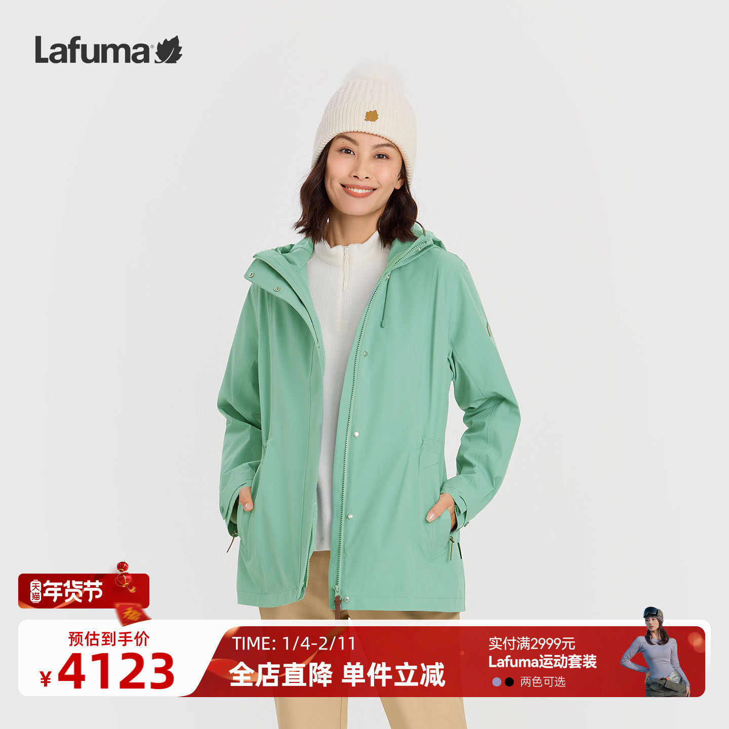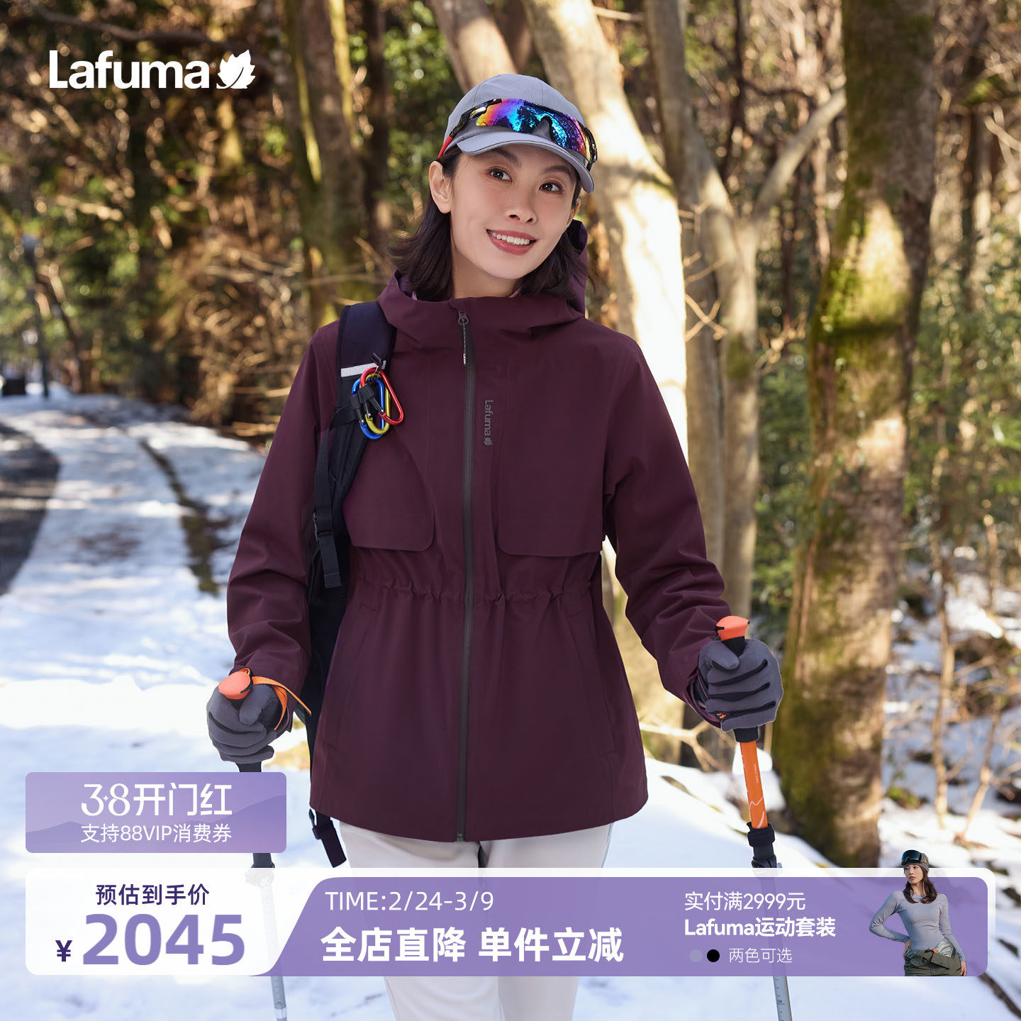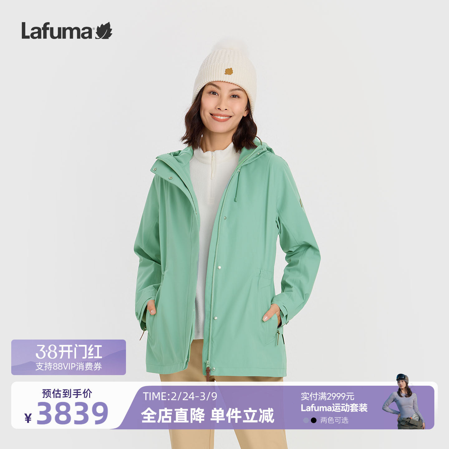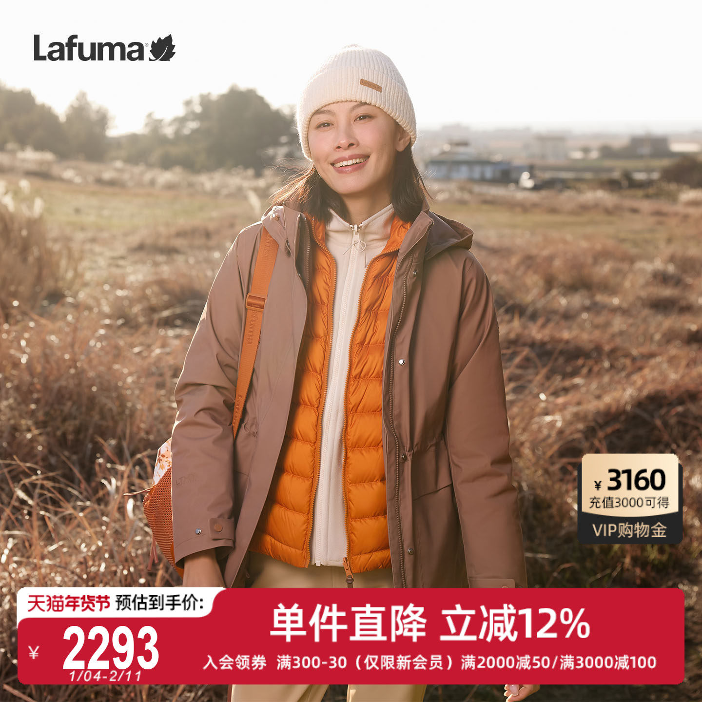 法国LAFUMA乐飞叶户外秋冬防风防水冲锋衣三合一女士可拆软壳内胆