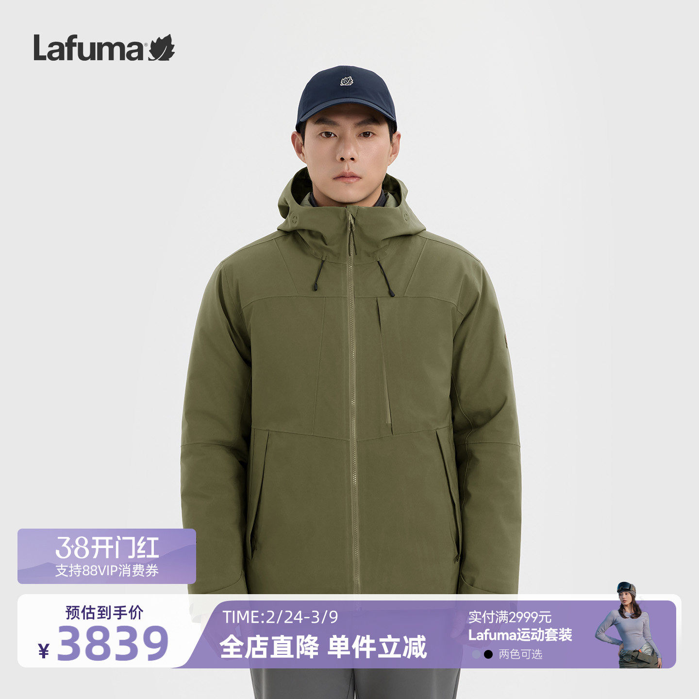 法国LAFUMA乐飞叶户外防风防水冲锋衣三合一女可拆卸700蓬羽绒内