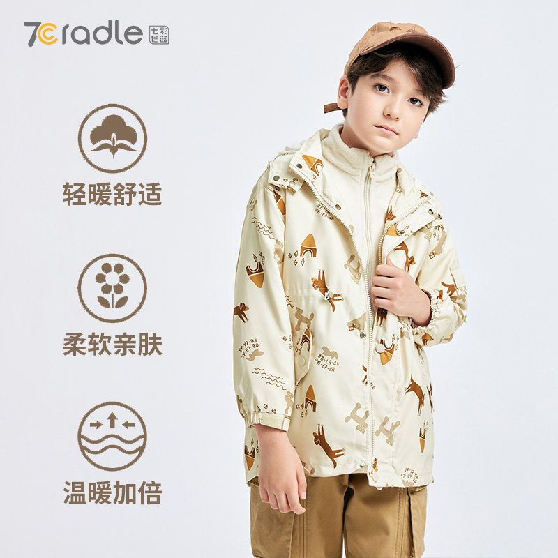 儿童外套春秋上衣男女童防水冲锋衣三合一户外风衣两件套七彩摇篮