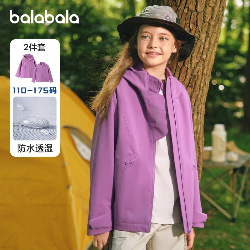 巴拉巴拉儿童外套男童女童上衣春秋季防水冲锋衣三合一两件套加绒