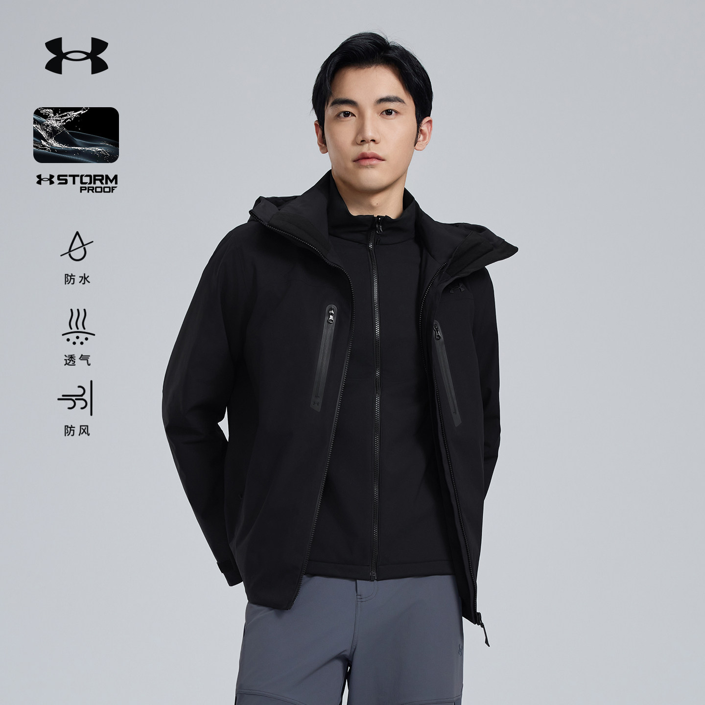 安德玛UA官方防水冲锋衣三合一单穿软壳内胆一衣多穿保暖外套男