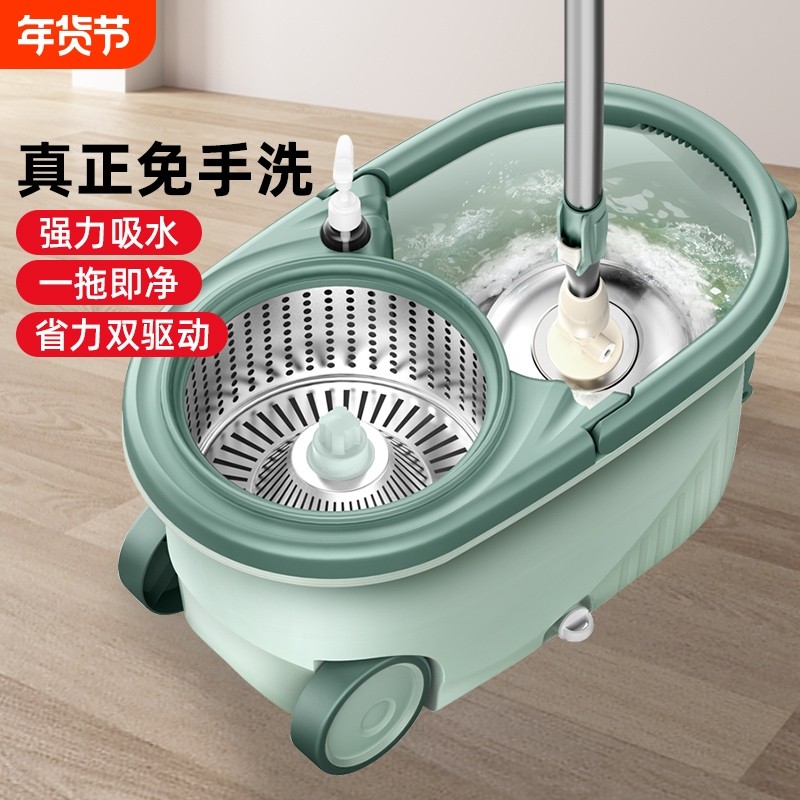通用旋转拖把免手洗自拧水旋转家用不锈钢加粗加厚拖布桶旋转甩干