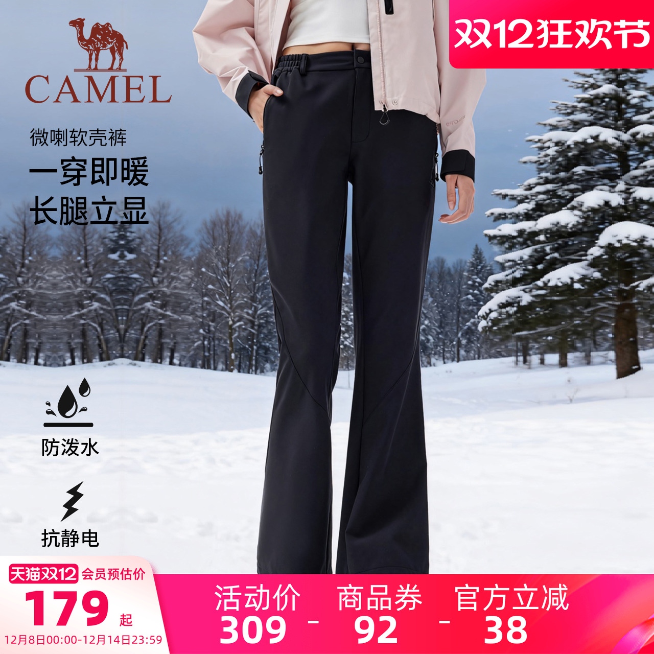 骆驼女装软壳微喇裤2025秋冬新款加绒保暖户外防风防泼水休闲裤