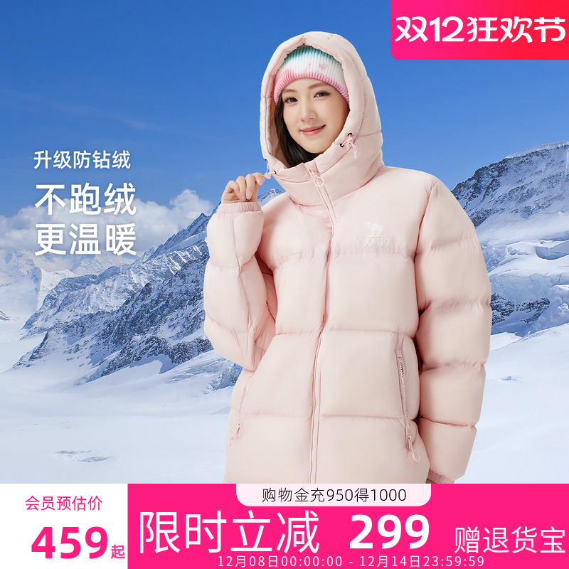 骆驼女装羽绒服女冬季2025新款拒水保暖加厚面包服百搭连帽外套女