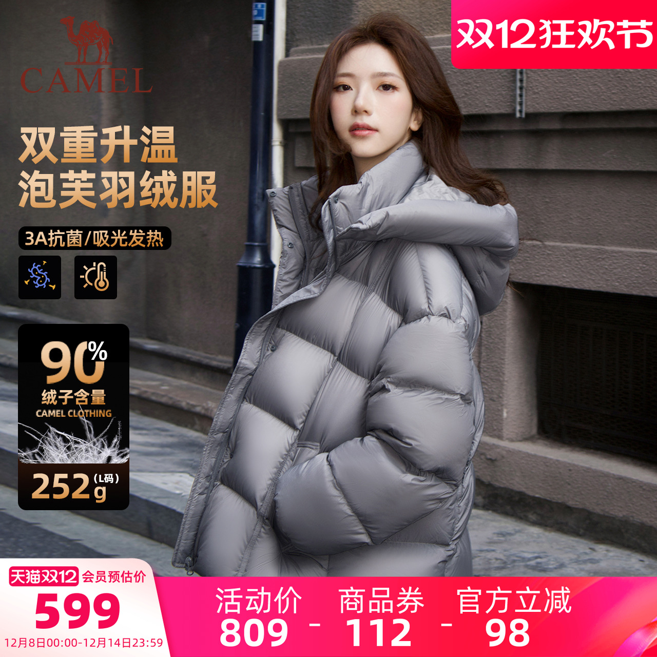 骆驼女装羽绒服中长款2025冬新款面包服保暖鸭绒加厚连帽羽绒外套