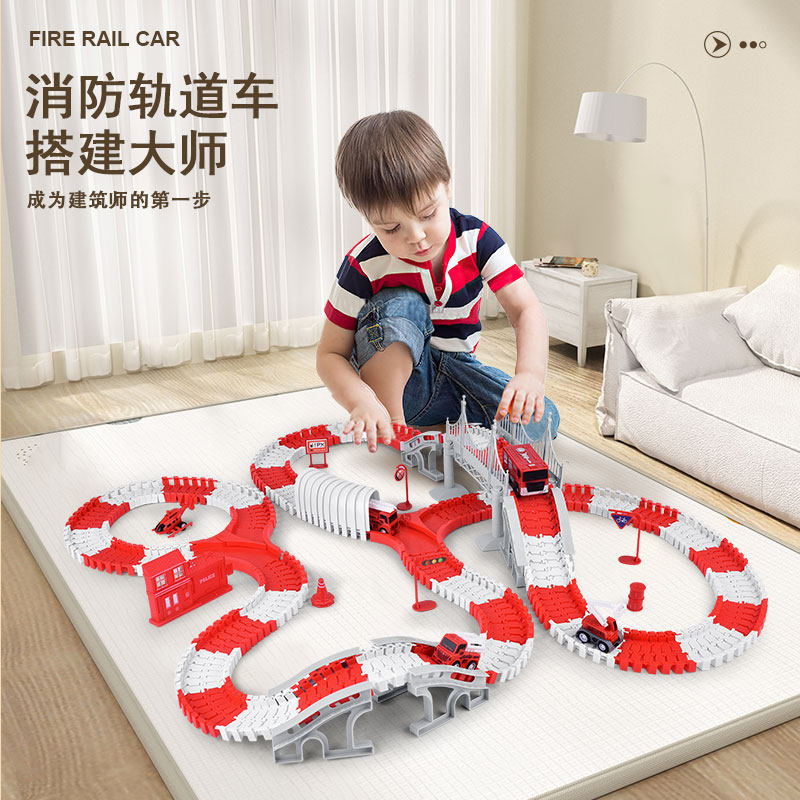 消防轨道车滑行玩具闯关大冒险儿童小火车玩具车益智男孩电动汽车