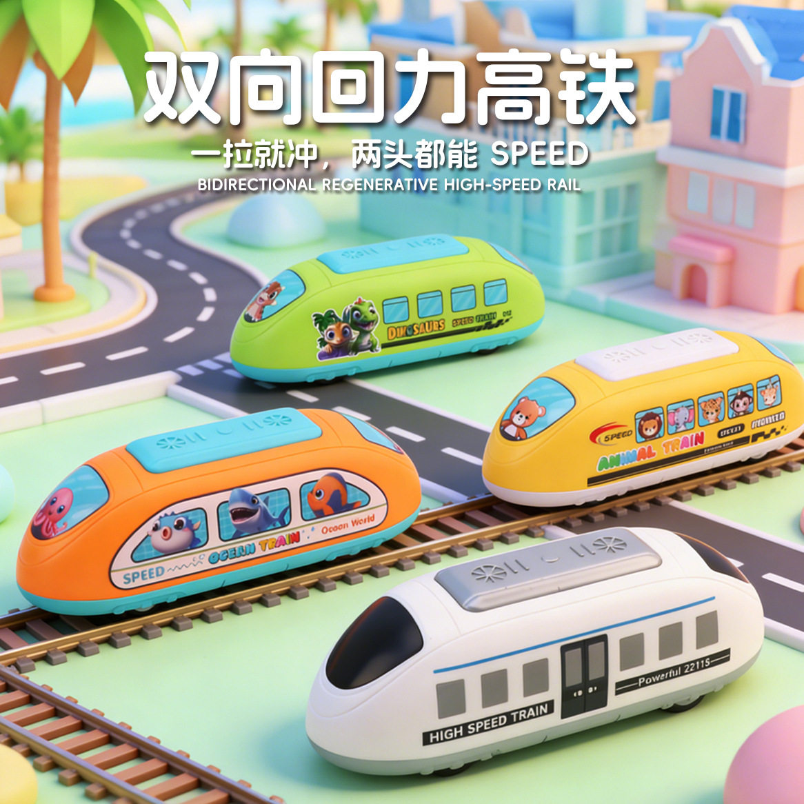 新款卡通双回力动车高铁仿真汽车火车玩具车模型澄海玩具益智地推