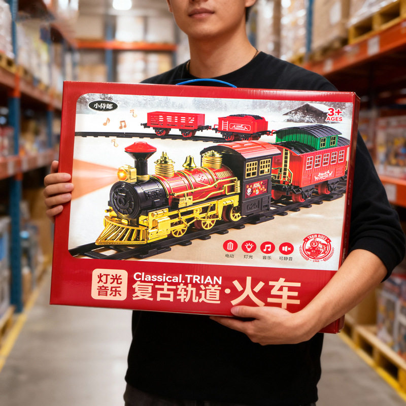 会唱歌复古蒸汽火车玩具车女男孩货运车厢轨道儿童益智绿皮小列车